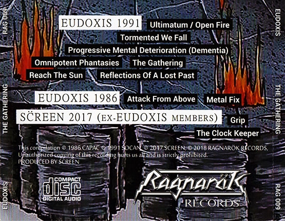 Компиляха творчества старой канадской банды. Правда багаж у группы невелик. Сингл Attack from Above,единственный полнометражник Open Fire и две песни некоего коллектива Screen,где играли музыканты Eudoxis после распада. Вот эти две песни категорически никому не советую слушать. А вот материал Eudoxis ...