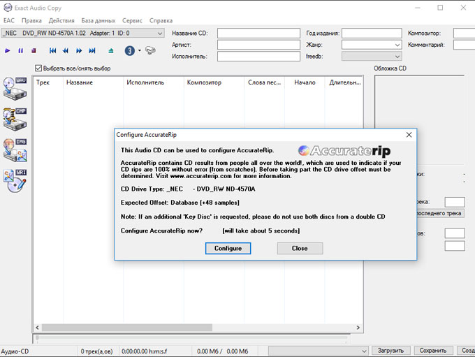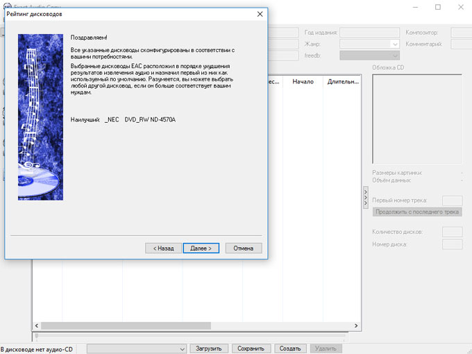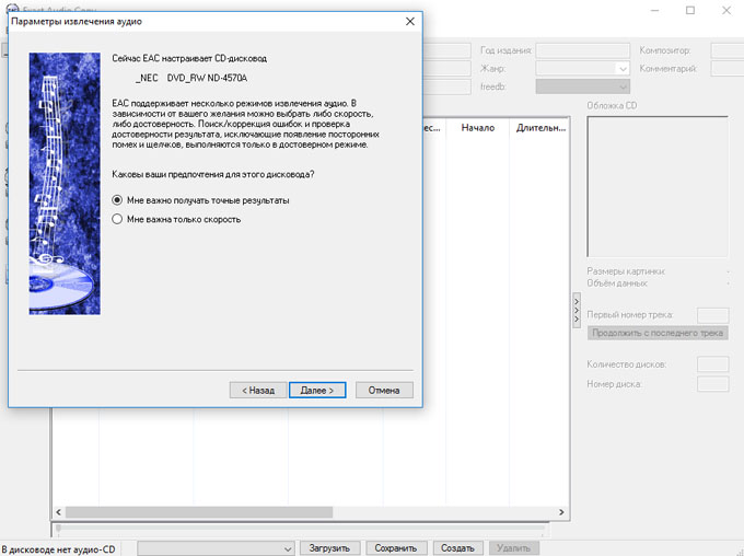 Закрываем EAC - вставляем болванку - запускаем EAC вновь ...