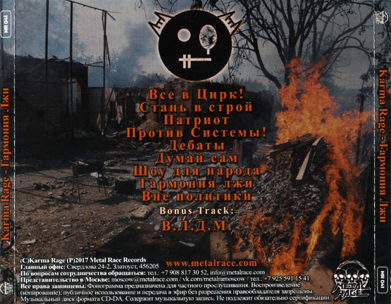 Второй студийный альбом в дискографии коллектива ... Участники группы Karma Rage - это сборная команда из разных музыкальных коллективов г. Северодонецка с многолетним опытом. Основу для сегодняшнего творческого состава и музыки дала группа «Похоронное Бюро», в 2005 году игравшая в Евпатории на фестива ...