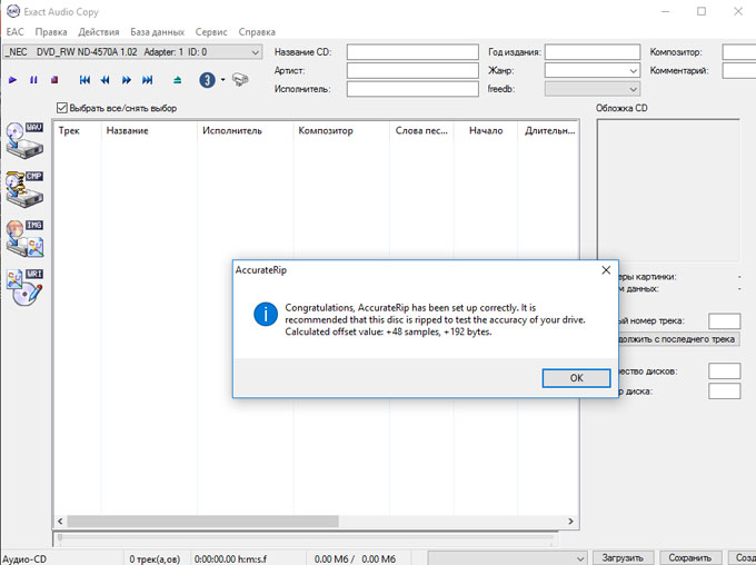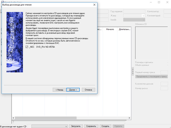 Закрываем EAC - вставляем болванку - запускаем EAC вновь ...